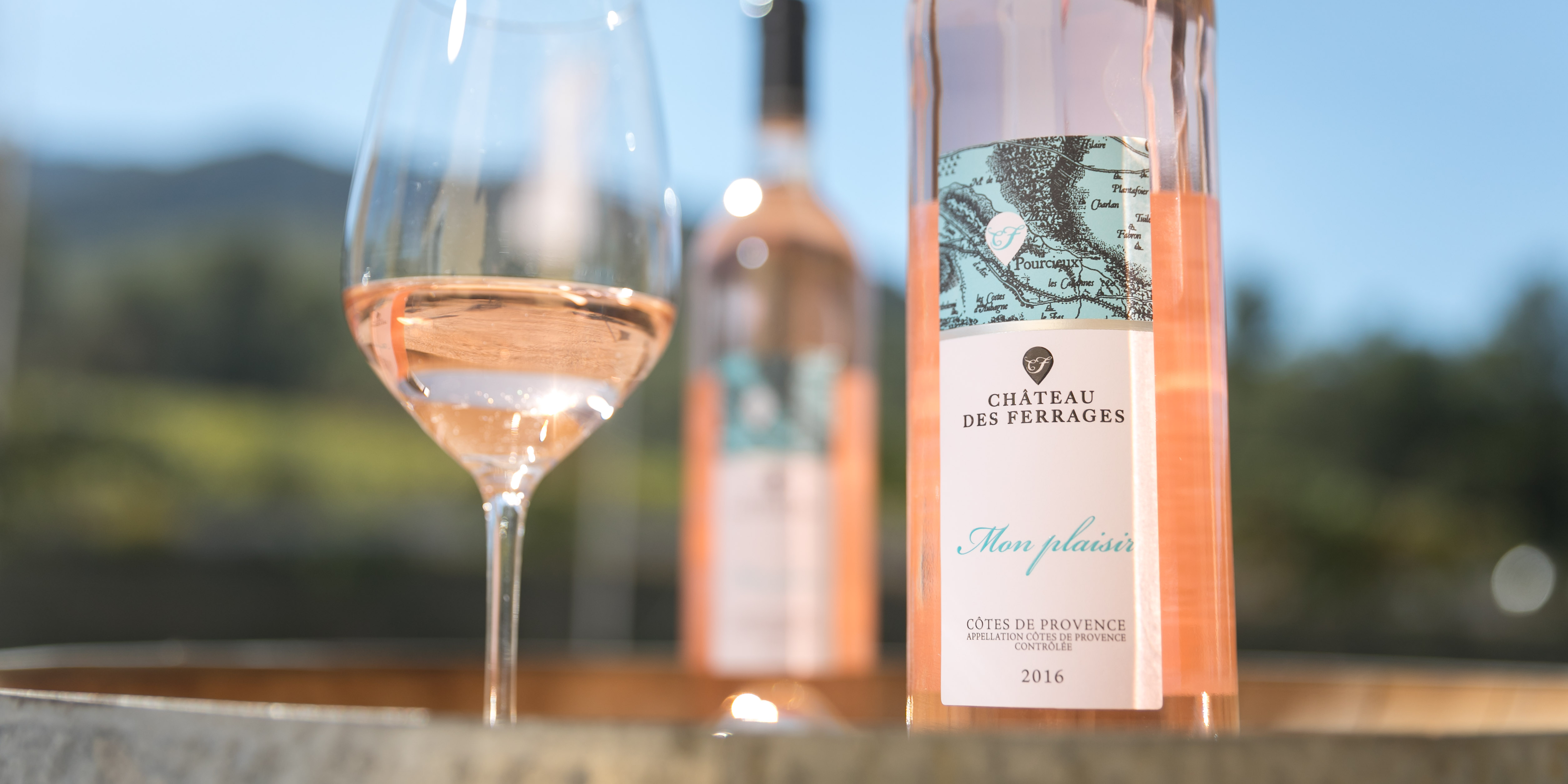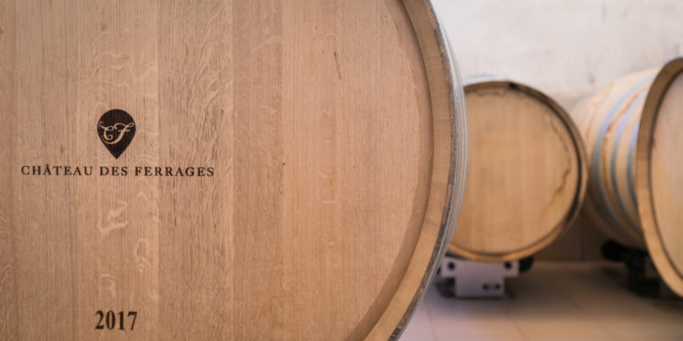 La nouvelle image du domaine, logo et étiquettes, reflète la philosophie qui règne au Château des Ferrages : donner un petit coup de jeune en s’appuyant sur le passé : sur une vieille carte de Pourcieux, une goutte de vin très stylisée et élégante indique la position du domaine.