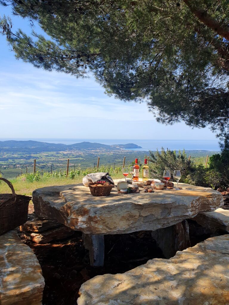 Au cœur du vignoble, surplombant la mer et le vignoble de Bandol, une magnifique table en pierre est dressée afin de vous accueillir de façon exclusive en ce lieu magique. Un apéritif garni de mets de saisons bios, privilégiant leur origine locale ou un buffet champêtre seront parfaitement assortis à nos vins et dégustés au sein du vignoble.