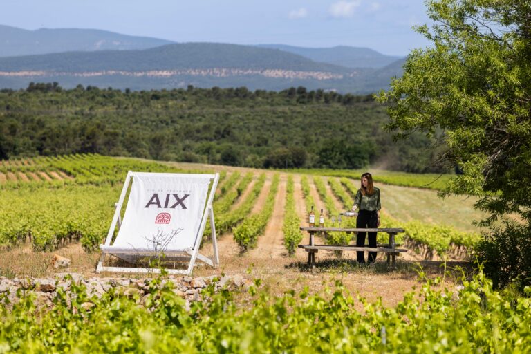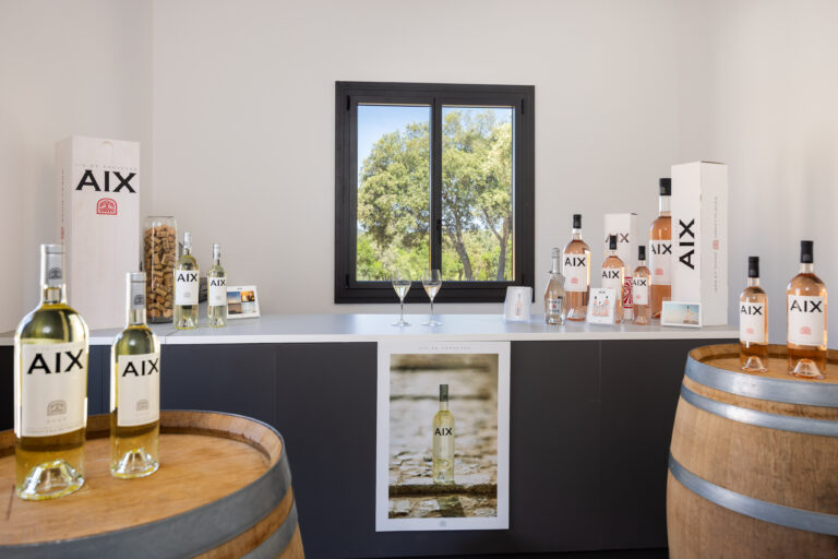 AIX : trois lettres et un logo comme une estampe rouge pour ce domaine bien connu des professionnels (restaurants, bars…) à l’international, moins par les amateurs de bons vins de l’hexagone. Et pourtant, le grand public est bienvenu, pour une visite suivie d’une dégustation, dans ce domaine fondé en 2010 par Eric Kurver, passionné par le vin autant que la Provence.