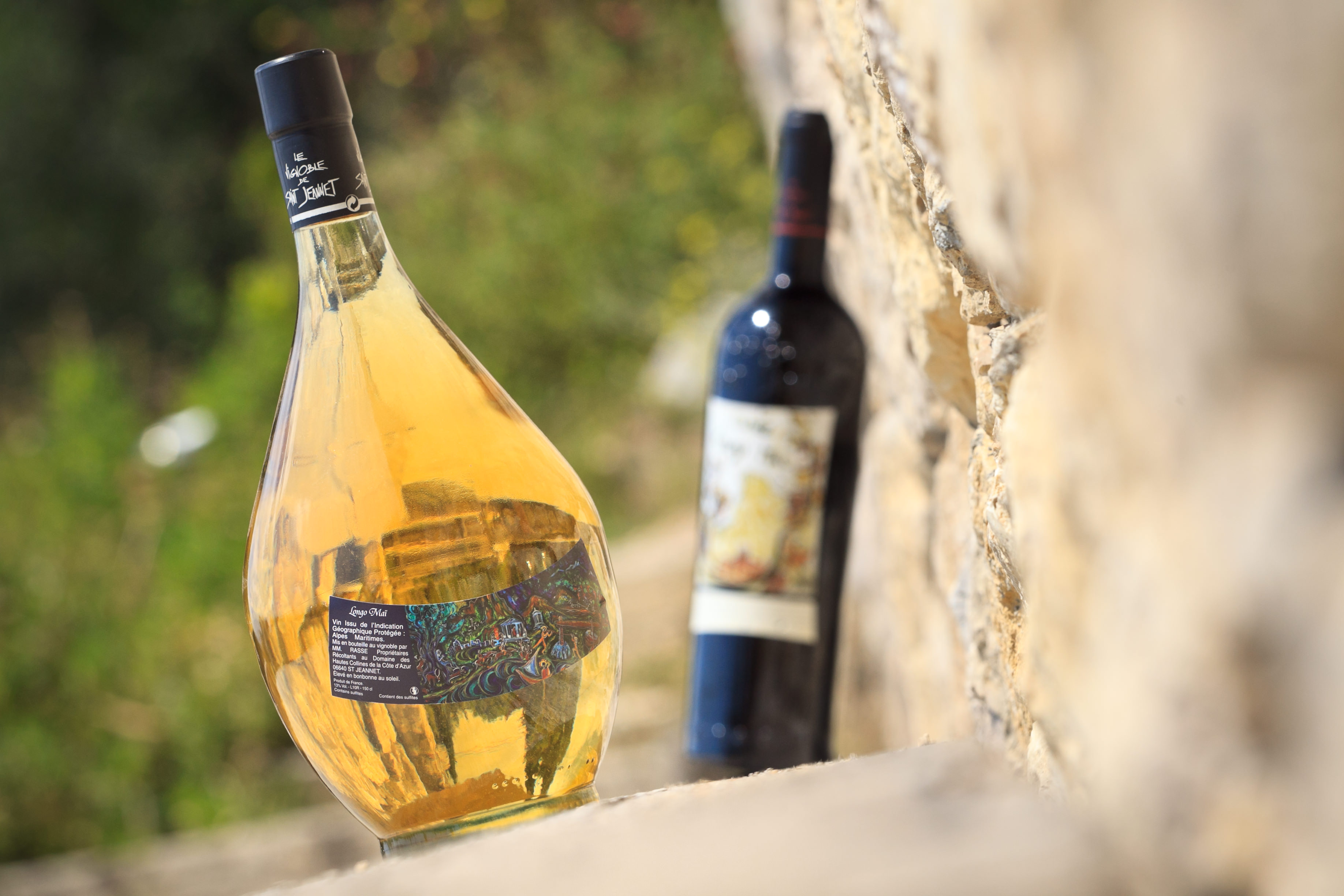 Sur les première hauteurs de la Riviera, des vins (vraiment) pas comme les autres. Un des derniers Saint-Jeannois à cultiver la vigne, Georges Rasse n’aime rien tant que l’originalité. C’est ainsi qu’il est le seul vigneron en Provence à croire aux bienfaits du soleil sur le vin. Le sien passe plusieurs mois en bonbonnes, sur les grandes terrasses du caveau. Et le résultat est pour le moins étonnant !
